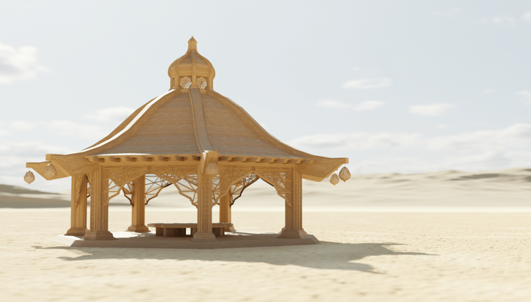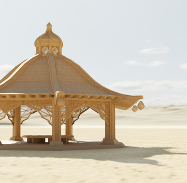 Concept designs rendered in Blender 3D for a traveling tea house art installation.
